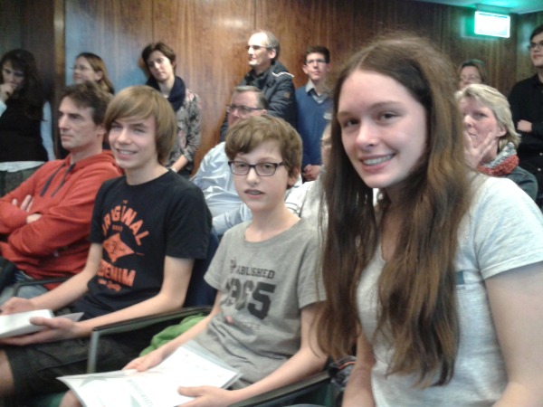 Danach setzte die Siegerehrung ein. Zuerst wurden die Schüler von dem Wissenschaftlichen Leiter des Forschungszentrums begrüßt. Es folgte sofort die Siegerehrung, angeleitet durch Christine Germer, der Wettbewerbsleitung Geesthacht. Torben Alers erreichte in der Wettbewerbssparte „Schüler experimentieren“ einen zweiten Platz in der Rubrik Chemie. Jacob Behnen erhielt für sein Projekt einen Sonderpreis, und zwar ein Jahresabo für die Zeitschrift Geolino. In der Wettbewerbssparte „Jugend forscht“ wurde das Projekt des Fachbereichs Chemie von Frederik Seeba, Vera Stein und Pascal Jarchow mit dem 2. Platz ausgezeichnet. Außerdem gewann unsere Schule einen Sonderpreis, welcher einen freien Tag in dem Schülerlabor des Forschungszentrums beinhaltet. Dort können die jungen Forscher im nächsten Schuljahr sofort weiterforschen.