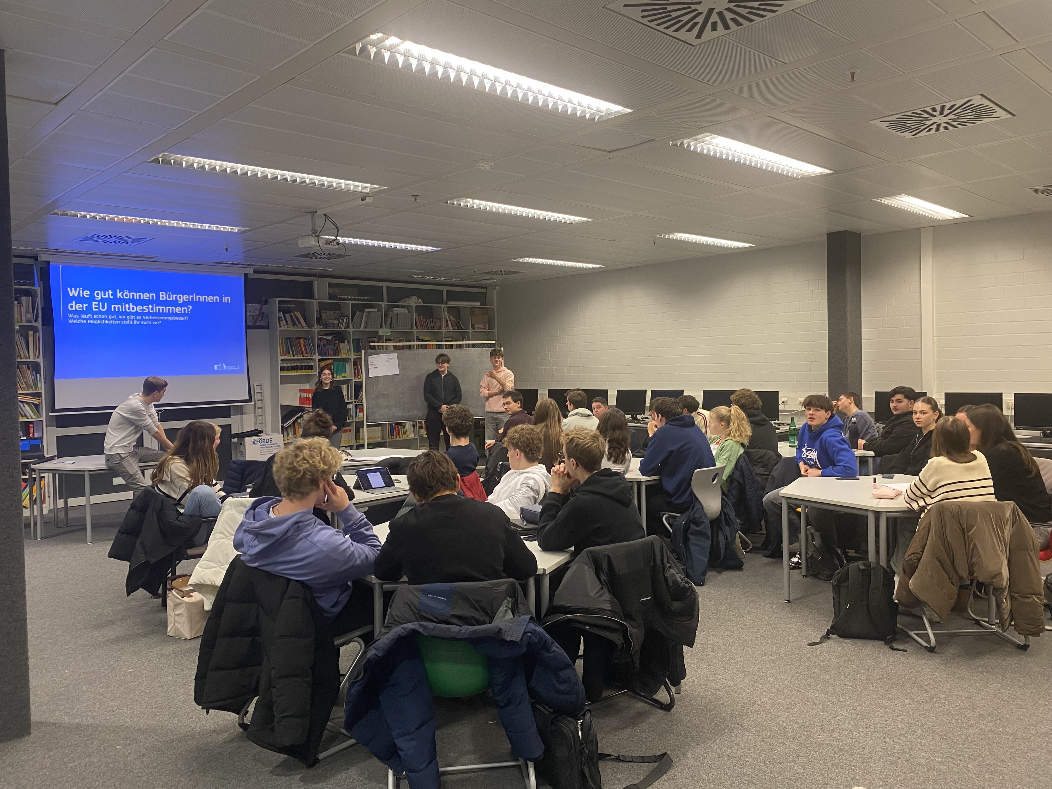 Im Rahmen des Back-To-School-Programms hatte die Q1 am Donnerstag, den 18.01., Besuch aus Brüssel. Brian Alex ist ein ehemaliger Schüler des EKGs und arbeitet mittlerweile für die Europäische Kommission. Zu Beginn haben wir alle zusammen über die Funktion der Europäischen Union gesprochen. Anschließend haben gemeinsam über Verbesserungsvorschläge diskutiert, wie man seine eigenen Ideen und Anliegen noch besser an die Politiker:innen herantragen und so noch aktiver in der EU mitbestimmen kann. Außerdem haben wir über die Europawahlen am 9. Juni 2024 gesprochen. Hierbei ist wichtig zu wissen, dass alle Personen ab 16 Jahren wählen dürfen. Somit können auch viele der SuS des Eric-Kandel-Gymnasiums ihre Stimme für Europa abgeben. Hierzu könnt ihr euch unter folgendem Link informieren: https://elections.europa.eu/de/