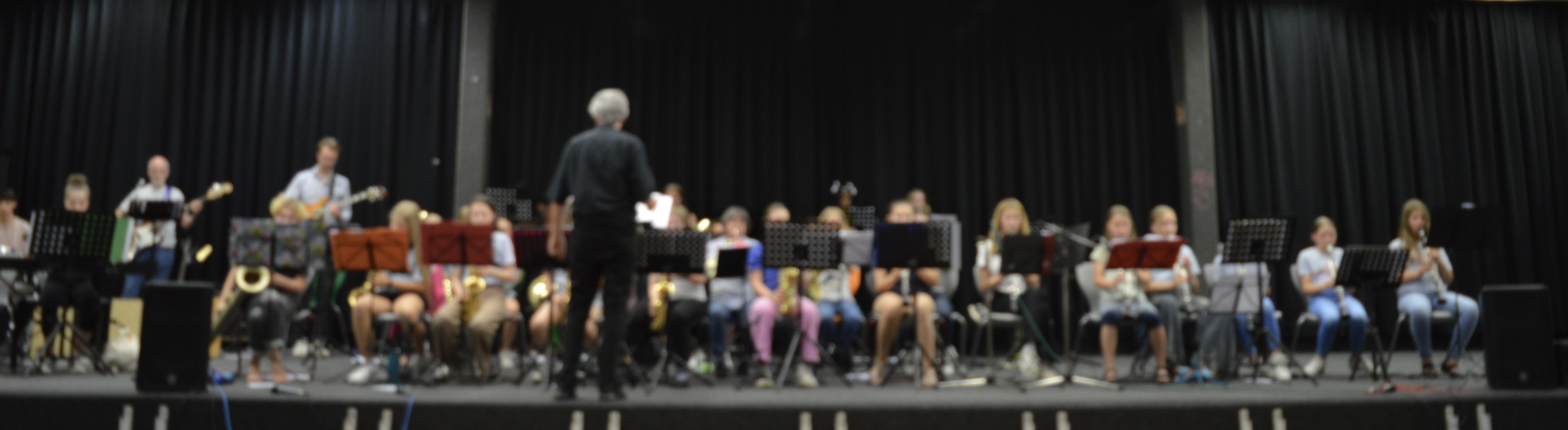 Die herrliche Stimmung wurde dieses Jahr vom Juniorblasorchester, der Bläserklasse und der Bigband eingeleitet. Sie spielten zusammen 3 Songs, welche alle aus demselben Jahr stammten, indem auch das Schulzentrum Heimgarten gegründet wurde (1973), da dieses in diesem Schuljahr 50 Jahre alt wird. Die drei Musikgruppen wurden von Frau Hoffmann und Herrn Stein angeleitet und auch instrumental von ihnen unterstützt.