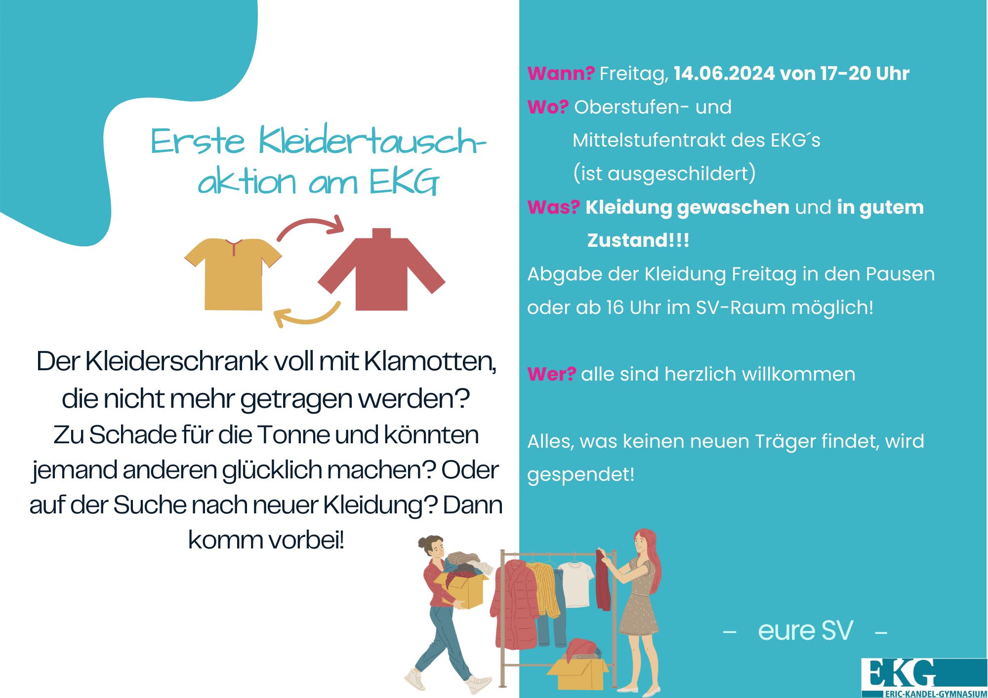Vielleicht haben Sie sich ja bereits mit Ihrer anstehenden Berufswahl auseinander gesetzt? Vielleicht brauche Sie aber auch noch ein paar Ideen und Erfahrungen von Ehemaligen, die in den letzten Jahren das EKG mit einem Schulabschluss verlassen haben? Dann laden wir Sie hiermit herzlich zu der Veranstaltung "Ehemalige berichten" am 23.02.24 von 14.00 - 16.00 Uhr ins LAG ein.